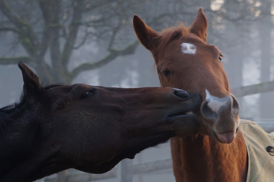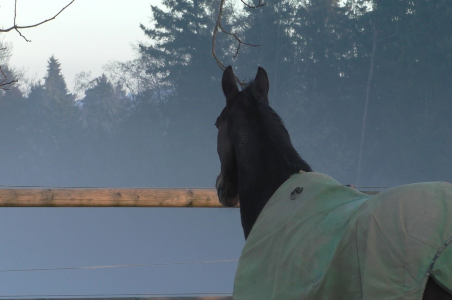 Im Kopf von Hecto rattert es ziemlich. Er geniesst es, einfach einmal wieder Pferd zu sein. Wir sind gespannt, wie sich das auf sein Verhalten im Frühling auswirkt. Seit etwas mehr als einer Woche wird er nicht mehr geritten. Bewegung hat er in der Gruppe mehr als genug - und meistens ist er der Anstifter, der sich jeweils ein neues "Opfer" zum Spielen sucht, wenn der aktuelle Spielgefährte genug hat.